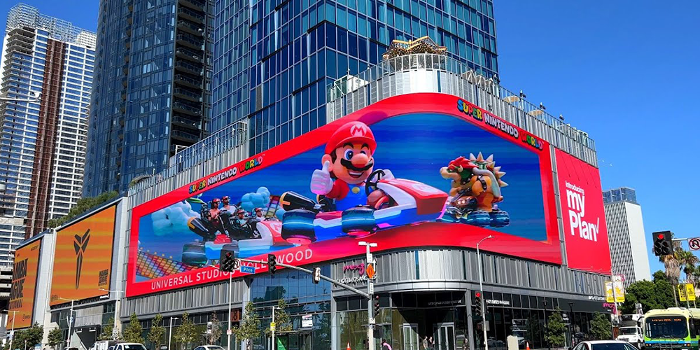 - Super Nintendo World’s Mario Kart Ride (Los Angeles):A 300-foot-long billboard showed Mario and theme park guests racing and gave a sneak peek of the new interactive ride.