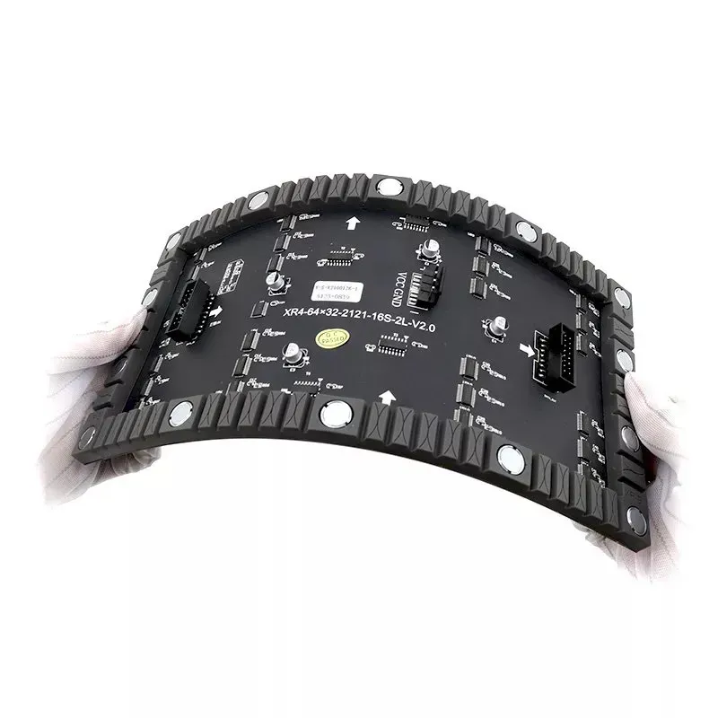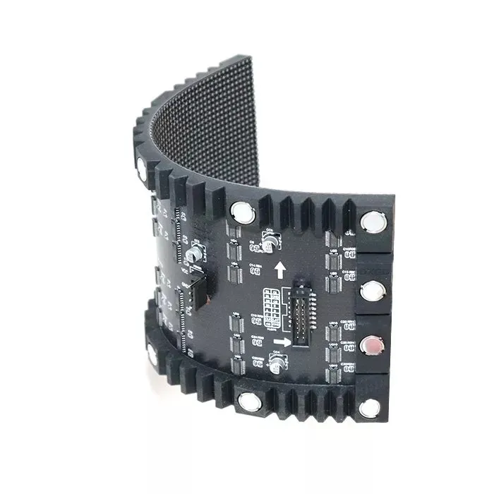 The flexible LED display module incorporates a soft PCB design that can easily be shaped into convex or concave forms, offering enhanced creative versatility.